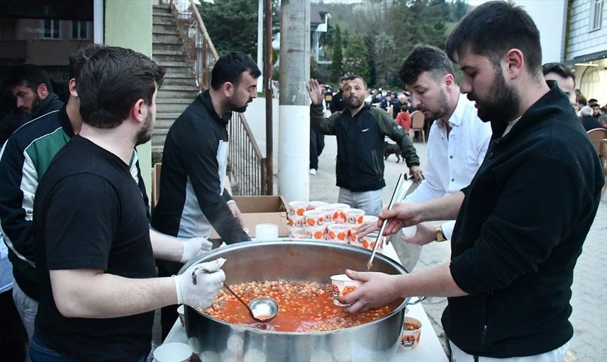 Düzce'nin Cumayeri ilçesinde yarım asrı aşkın süredir düzenlenen geleneksel iftar programına bu yıl yaklaşık 1500 kişi katıldı. Hayırseverlerin katkısıyla kazanlarda pişirilen yemekler, köy camisinin önünde kurulan iftar sofrasını süslüyor.