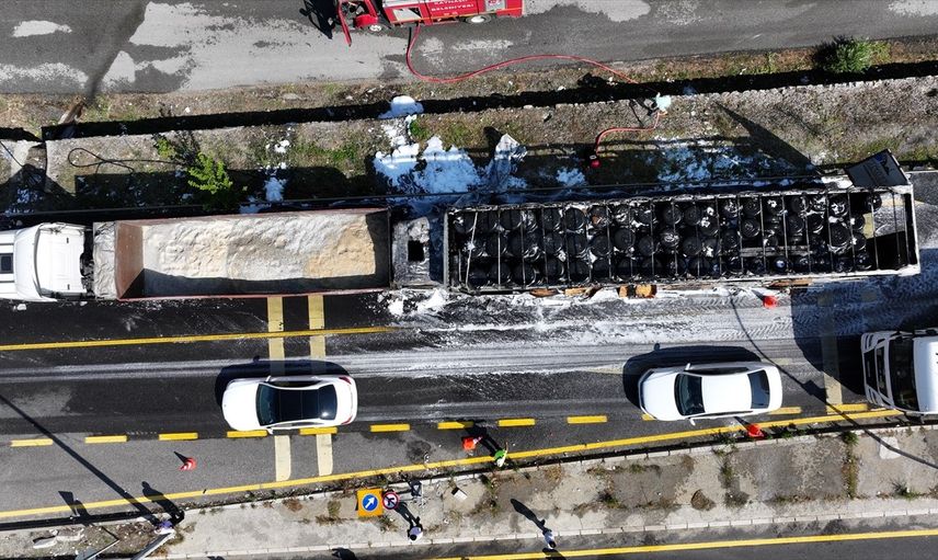 Çarpışmanın etkisiyle her iki tır, Kumluca Mahallesi mevkiine kadar sürüklendi. Olayın bildirilmesi üzerine bölgeye polis, itfaiye ve sağlık ekipleri yönlendirildi. İtfaiye ekibi, olay yerinde güvenlik çemberi oluşturarak yangını söndürmeyi başardı.
