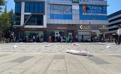 Oyuncak bebeklerin etrafına, "Katil İsrail Filistin'den Defol", "Bebek Katili İsrail", "BM Uyurken Gazze'de Çocuklar Ölüyor" ve "Kahrolsun İsrail, Katil Netanyahu" yazılı pankartlar yerleştirildi. Sessiz ve çarpıcı bir protesto olarak iki saat süren eylem, bölge halkı tarafından ilgiyle takip edildi.