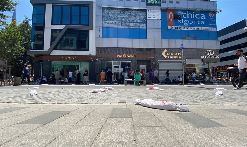 Düzce'de gerçekleştirilen protesto, İsrail'in Filistin halkına yönelik sürdürdüğü saldırılara karşı bir tepki olarak düzenlendi. Eylemde, İsrail'in bombardmanlarında hayatını kaybeden çocukları anmak amacıyla yola kanlı kefenli oyuncak bebekler konuldu.