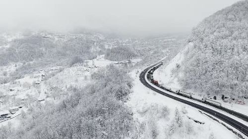 Düzce'de kar nedeniyle rampada kalan İstanbul-Hatay seferindeki köprü ayağı yüklü tır, yollar açıldıktan sonra 2 çekiciyle kurtarılarak yoluna devam etti.