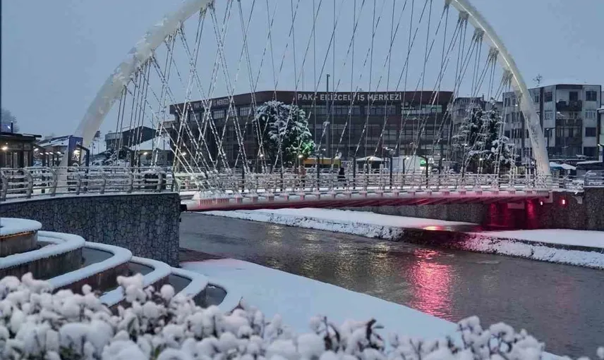 Düzce'de etkili olan kar yağışıyla şehir, kartpostallık görüntüler ortaya koydu. İl genelinde oluşan beyaz örtü özellikle yüksek kesimlerde ve kent merkezinde görsel bir şölen sundu.