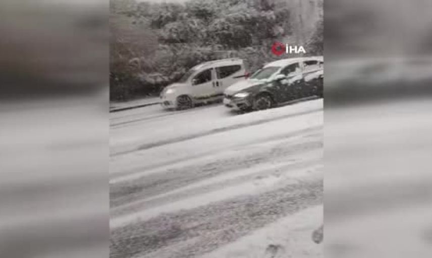 Görüntülerde; aracın yokuş aşağı ilerlerken zeminin karla kaplı olması nedeniyle hızını kaybettiği, sürücünün kontrolü sağlamaya çalıştığı ancak başarılı olamadığı ve aracın önce kaldırıma çarpıp sonra savrularak refüje çıktığı anlar yer alıyor. O anlar, bölgedeki bir vatandaşın kar yağışını kaydettiği telefon kamerasına anbean yansıdı.
