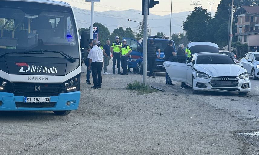 Düzce'de, bir otomobilin midibüse çarpması sonucu meydana gelen kazada 7 kişi yaralandı. D-655 Batı Karadeniz Bağlantı Yolu'nun Akçakoca istikametinde gerçekleşen olayda, M.Ş.A. tarafından yönetilen 67 SA 005 plakalı otomobil, Osmanca köyü mevkisindeki ışıklı kavşakta hareket halinde olan Ş.S. yönetimindeki 81 ABZ 533 plakalı midibüse arkadan çarptı.