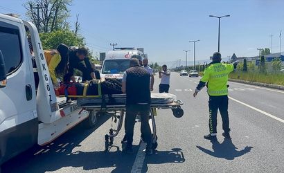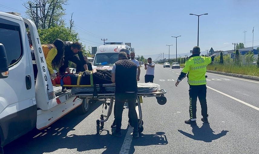 Düzce'de motosikletiyle çekiciye çarpan kurye yaralandı. Kaza yerine polis ve sağlık ekipleri sevk edildi. Sağlık ekipleri, çarpmanın etkisiyle savrularak çekicinin kasasına düşen motosiklet sürücüsüne müdahale etti.