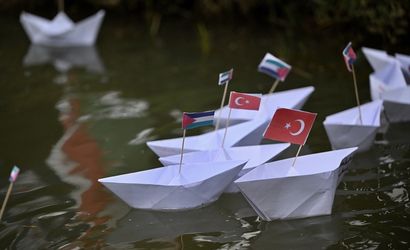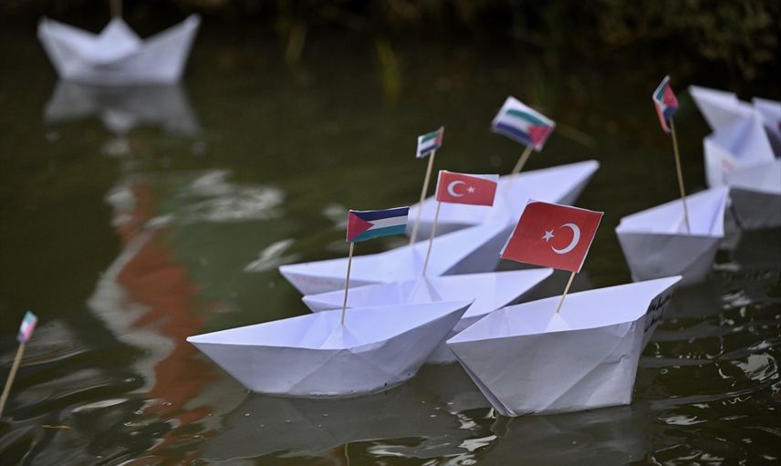 Düzce'de öğrenciler, Gazze'ye insani yardım ulaştırmak için yola çıkan ve İsrail'in saldırısına uğrayan Küresel Sumud Filosu'na destek için kağıttan yaptıkları gemileri suya bıraktı.
