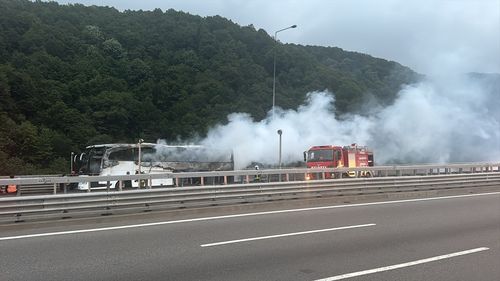 Düzce'de yolcu otobüsünde çıkan yangın nedeniyle İstanbul yönü ulaşıma kapandı. 38 yolcu tahliye edildi.