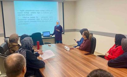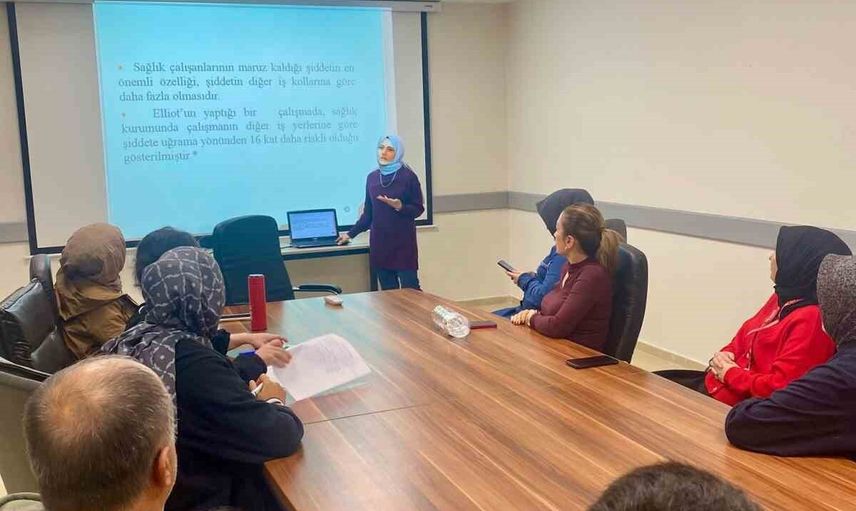 İlçe Toplum Sağlığı Merkezi'nden Hemşire Tuğçe Ocak tarafından verilen ilk oturumda, İlçe Devlet Hastanesi ve Toplum Sağlığı Merkezi personeline şiddet olaylarına karşı alınacak önlemler, hızlı ve doğru iletişim yöntemleri ile güvenlik prosedürleri hakkında detaylı bilgi aktarıldı. Ayrıca, Beyaz Kod durumunda 1111'i tuşlayarak hızlı çağrı yapma prosedürü vurgulandı.