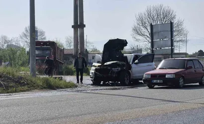 Düzce (İHA) – Olay, sabah saatlerinde D-100 kara yolu Hal Kavşağı mevkiinde meydana geldi. Edinilen bilgiye göre, Düzce şehir merkezinden Küçük Sanayi Sitesi istikametine seyreden bir cip, seyir halindeyken motor kısmından alev aldı.
