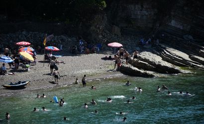 Düzce'nin turizm ilçesi Akçakoca'da sıcak havadan bunalanlar sahillerde yoğunluk oluşturdu. Hafta sonu sıcak havayı fırsat bilenler, yeşil ve mavinin buluştuğu Çuhallı ve mavi bayraklı Ceneviz Kalesi Plajı'nda denize girerek serinledi.