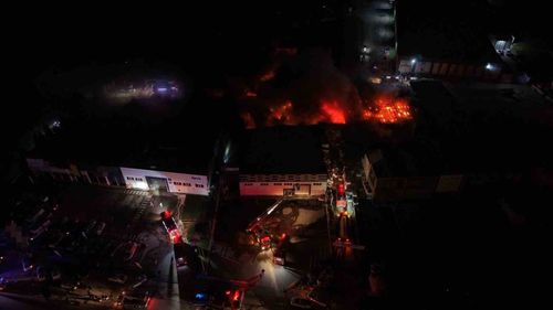Düzce Doğanlı'da strafor fabrikasında çıkan yangın, rüzgarın etkisiyle yayıldı; D-100 karayolu iki yönlü trafiğe kapatıldı, söndürme çalışmaları sürüyor.