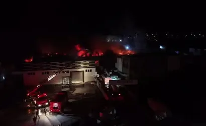 Yangının sürdüğü fabrikanın durumu havadan drone ile kayda alındı. Geceyi aydınlatan alevlerin büyüklüğü dron kamerasına yansıdı ve görüntüler, müdahale ekiplerinin çalışmalarının ilerleyişiyle birlikte olayın boyutunu gösteriyor.