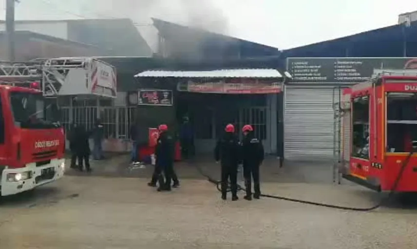 Olay, eski sanayi sitesi olarak bilinen alanda meydana geldi. Pazar günü kapalı olan sanayi çarşısından geçen bir kişi, kapalı bir dükkânın içinden siyah dumanların yükseldiğini fark etti. Dükkanın kapılarının kapalı olduğunu gören vatandaş derhal Düzce Belediyesi İtfaiye Müdürlüğü'ne haber verdi.