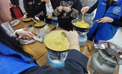 Karadeniz mutfağının sevilen lezzetlerinden kuymak, gençlerin aktif katılımıyla tava başında hazırlanarak katılımcılara uygulamalı bir deneyim sunuldu. Etkinlik süresince gençler, kuymak yapımının püf noktalarını öğrenirken yöresel mutfak kültürünü yerinde tanıma fırsatı buldu.