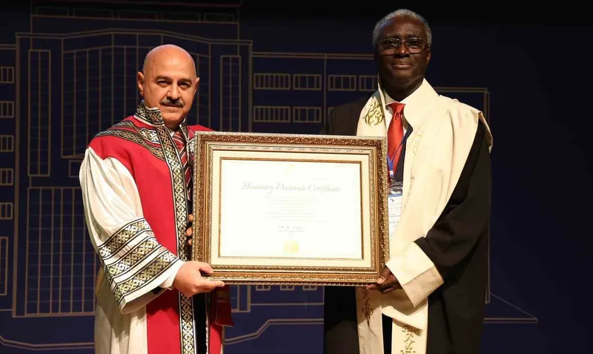 Açılış konuşmalarının ardından Southern Üniversitesi ve A&M Koleji Rektör Yardımcısı Prof. Dr. Patrick Mensah'e, Türk yükseköğretim sistemine sağladığı katkılar ve akademik çalışmaları nedeniyle mühendislik alanında fahri doktor unvanı verildi. Rektör Prof. Dr. Nedim Sözbir tarafından cübbesi giydirilen Mensah, belgesini aldıktan sonra Düzce Üniversitesi'nde bulunduğu için memnuniyetini belirtti ve mühendislik eğitimine dair değerlendirmelerde bulundu.