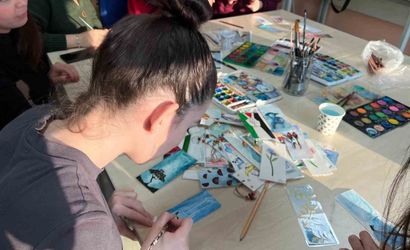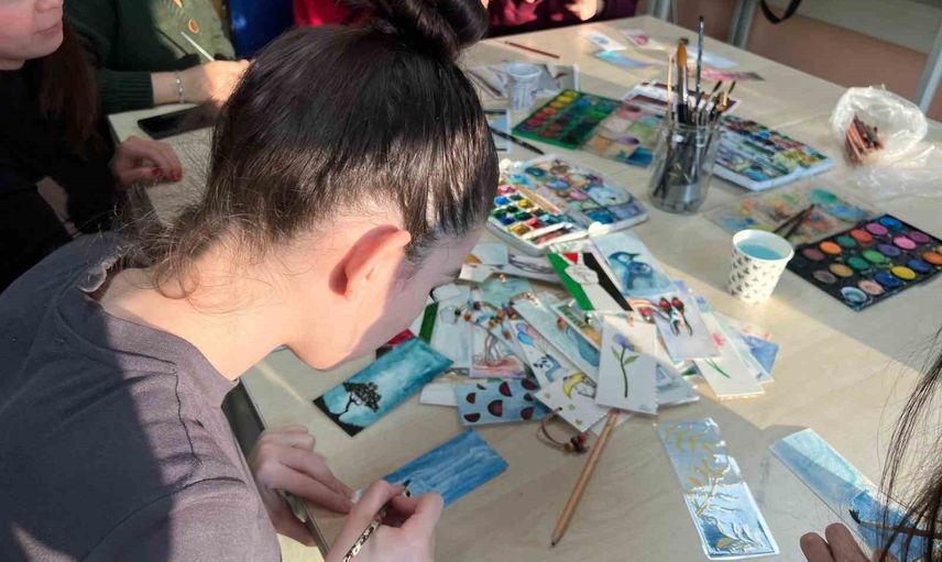Düzce Üniversitesi öğrencileri Gençlik Merkezi'nde sulu boya ile kitap ayracı üretti