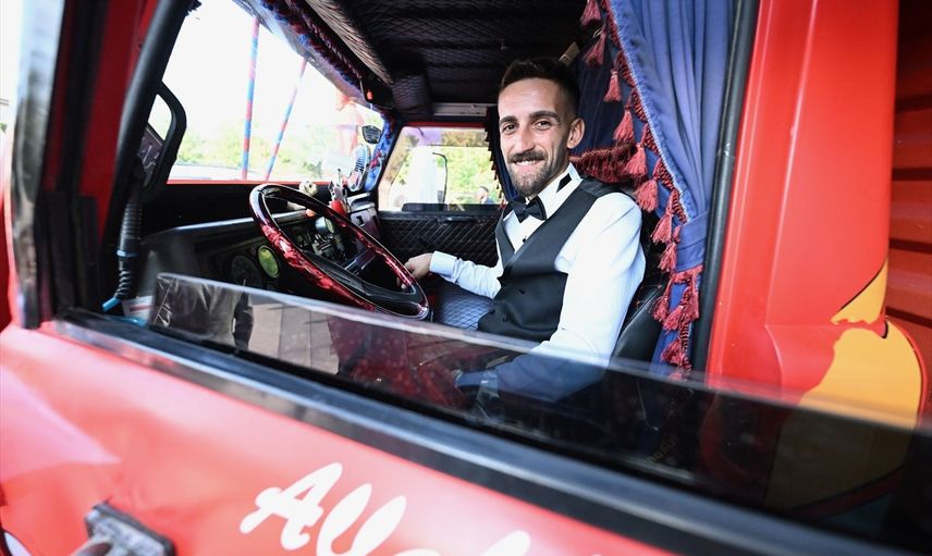 Düzce'nin Kaynaşlı ilçesinde, 26 yaşındaki kamyon şoförü Ali Kemal Kazancı, mutlu gününde aracını gelin arabası olarak kullanarak ilginç bir olaya imza attı.