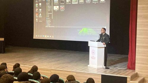 Düzce'de düzenlenen programda Üsteğmen Süleyman Cihad Usanmaz, Milli Savunma Üniversitesi'nin yapısı, eğitim süreci ve askerlik mesleğinin niteliklerini öğrencilere anlattı.