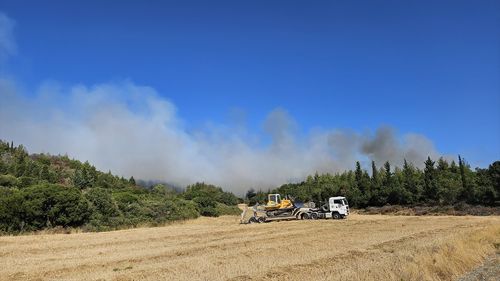 Çanakkale'nin Eceabat ilçesinde çıkan orman yangınına havadan ve karadan müdahale ediliyor. 57. Alay Şehitliği geçici olarak kapatıldı.
