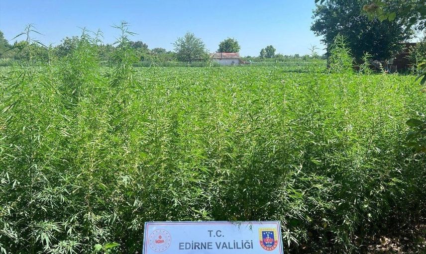 Edirne'de, jandarma ekiplerince 6 bin kök Hint keneviri ele geçirildi.