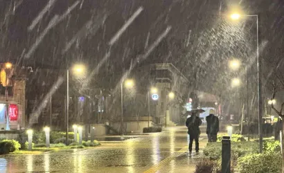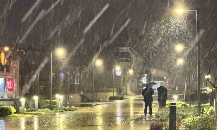 Edirne'de akşam saatlerinde hızlanan kar yağışı, kentin simgelerinden Selimiye Camii ile birleşerek izleyenlere etkileyici bir görüntü sundu.