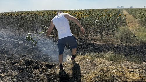 Edirne'de Anız Yangınına Müdahale Sürüyor
