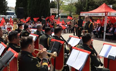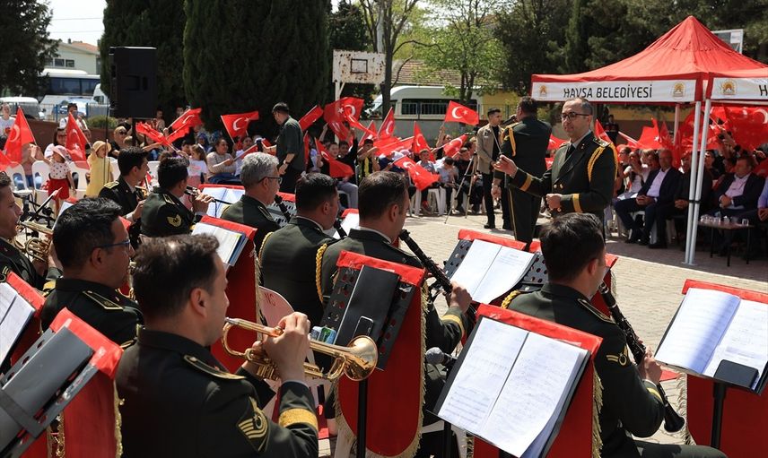 Edirne'de 5. Kolordu Bölge Bando Komutanlığı ekibi, 23 Nisan Ulusal Egemenlik ve Çocuk Bayramı dolayısıyla, Havsa ilçesine bağlı Necatiye köyündeki Şehit Engin Şahin İlkokulu'nun bahçesinde sahne aldı.