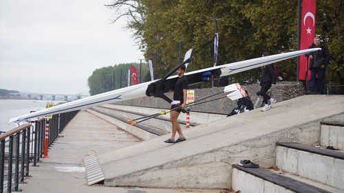 Edirne'de Meriç Nehri'nde düzenlenen Büyükler Türkiye Kupası Kürek Yarışları başladı; yaklaşık 300 sporcu 2000 metrelik parkurda kadın ve erkek klasmanlarında yarışıyor.