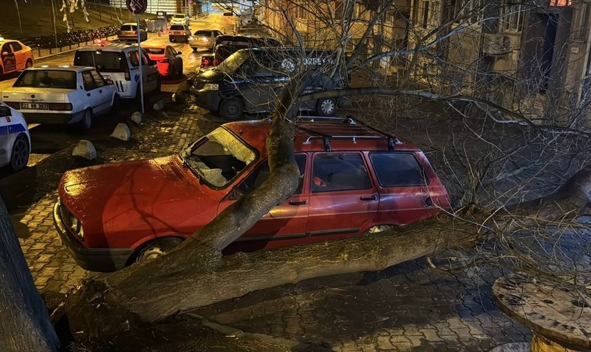 Edirne'de üzerine ağaç devrilen otomobilde maddi hasar oluştu. Devrilen ağaç, itfaiye ekiplerinin çalışmasıyla testereyle kesilerek kaldırıldı.