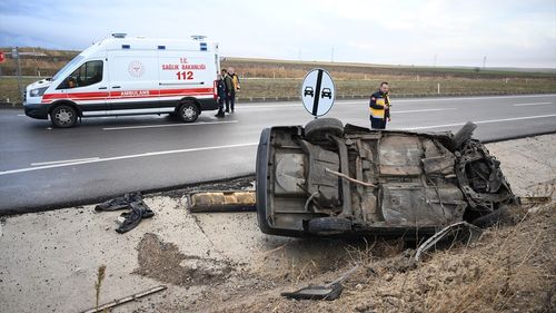 Edirne'de devrilen otomobildeki 3 kişi hastaneye kaldırıldı. Kaza, Kırklareli-Edirne kara yolunda gerçekleşti.