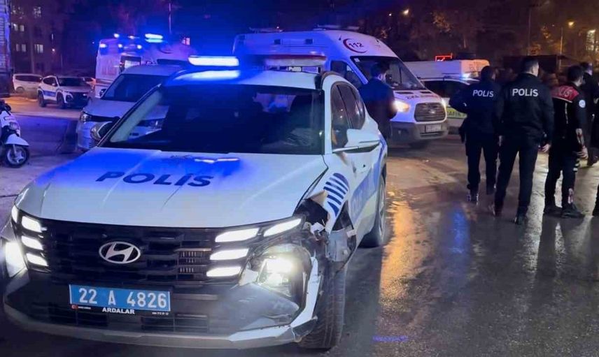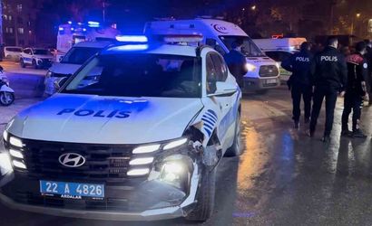 Edirne'de polis ekiplerinin dur ihtarına uymayan bir motosiklet sürücüsünün kaçışı, kovalamaca sonrası polis aracına çarpmasıyla sonlandı. Kazada iki kişi yaralandı.