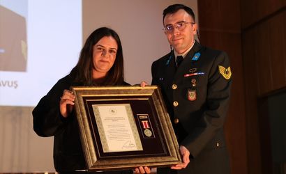 Tören, saygı duruşu ve İstiklal Marşı ile başladı. Suriye'nin El Bab bölgesinde 2016 yılında terör örgütü mensuplarının saldırısında yaralanan Çolakoğlu, sahneye davet edildi. Burada, Edirne Valisi Yunus Sezer tarafından Devlet Övünç Madalyası ve Beratı ile onurlandırıldı.
