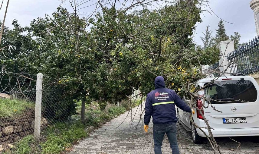 Edirne'de etkili olan fırtına yaşamı olumsuz etkiledi. Saatteki hızı 60 kilometreyi bulan rüzgar nedeniyle bir ağaç kökünden sökülerek park halindeki otomobilin üzerine devrildi.