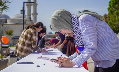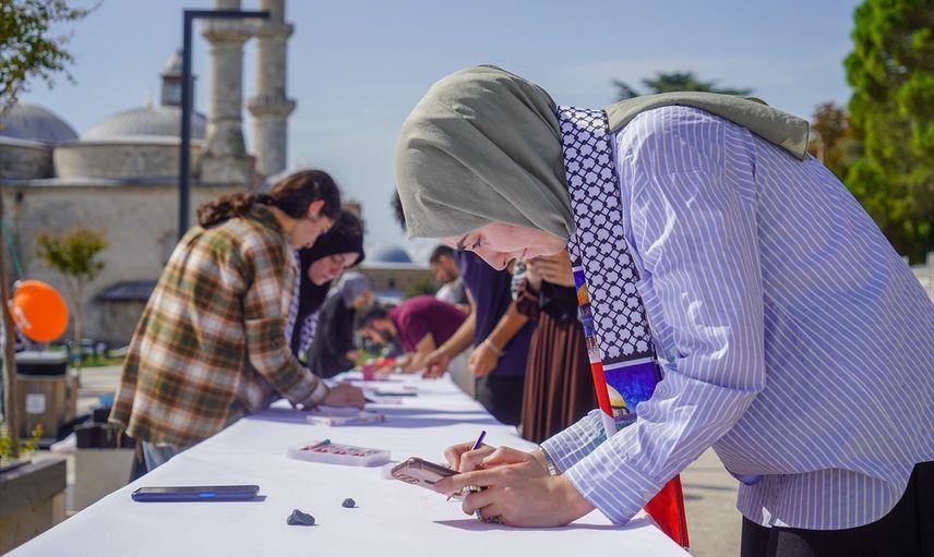 Yetim Vakfı Edirne Temsilciliği tarafından Selimiye Meydanı'nda düzenlenen bu anlamlı etkinliğe çeşitli sivil toplum kuruluşlarından temsilciler ve öğrenci grupları katılım gösterdi. Uzun bir masa üzerine konulan tuvale Gazze'ye destek mesajları ile özgün resimler çizildi.