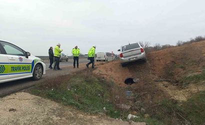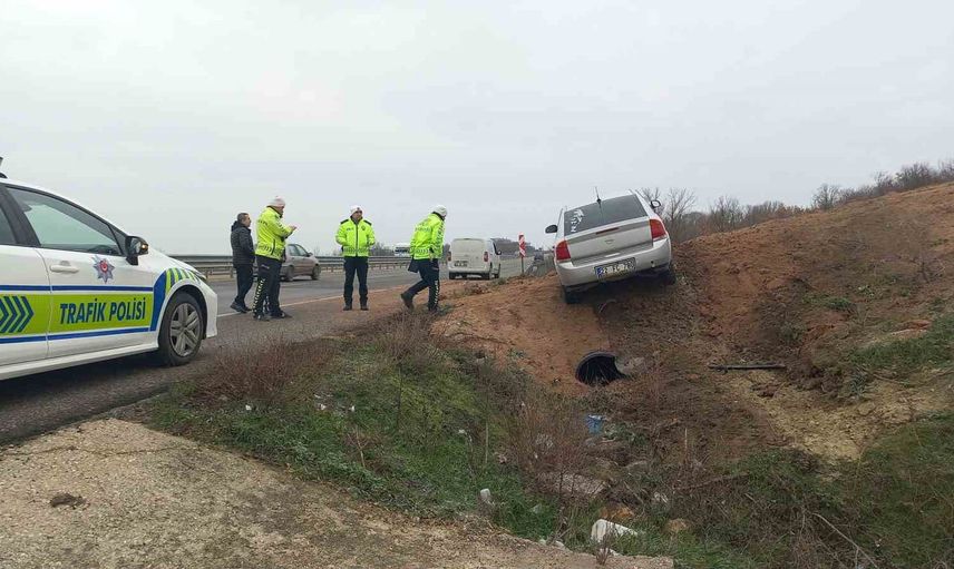 Edirne'de gizli buzlanma ve aşırı hız sonucu otomobil tarlaya uçtu