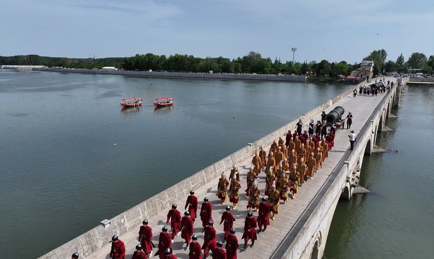 Konserin ardından mehteran takımı ve temsili yeniçeri ile leventler, Meriç Köprüsü başında bir araya geldi. Bu grup, köprüyü yürüyerek geçerken bazı yeniçeriler İstanbul’un fethinde önemli bir rol oynayan şahi toplarının replikalarını taşıyan tahta arabaları ile yürüyüşe katıldı.