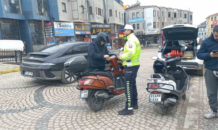 Edirne'de motosiklet sürücülerine yönelik trafik denetimi