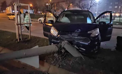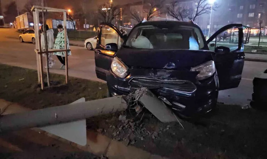Edirne'de kontrolden çıkan bir otomobilin refüje çıkarak bir elektrik direğine çarpması sonucu meydana gelen kaza, çevredeki bir iş yerinin güvenlik kamerasına yansıdı.