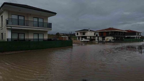 Edirne'de sağanak sonrası lüks villalar su baskınına uğradı, yol trafiğe kapandı