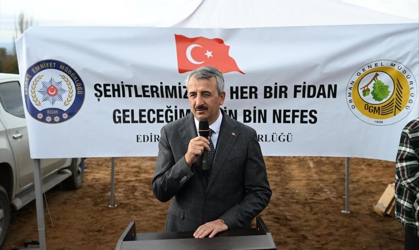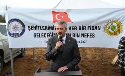 Emniyet Genel Müdürlüğü Daire Başkanlığı ile Orman Genel Müdürlüğü'nün "Şehitlerimiz İçin Bir Fidan, Geleceğimiz İçin Bir Nefes" projesi kapsamında, Edirne'nin Lalapaşa ilçesine bağlı Çömlekköy köyünde toplam 500 fidan toprakla buluştu.