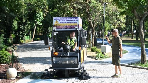 Edirne'nin Söğütlük Millet Bahçesi, sıcak havalarda serinlemek için lavanta suyu püskürtme uygulamasına geçiş yaptı.