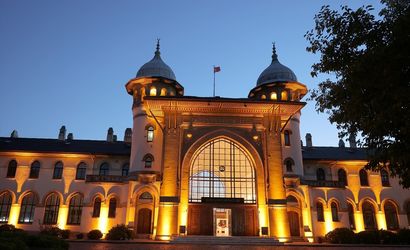Trakya Üniversitesi (TÜ) Karaağaç Yerleşkesi'nde bulunan tarihi garda nostaljik dokuya uygun dış cephe aydınlatması yapıldı.