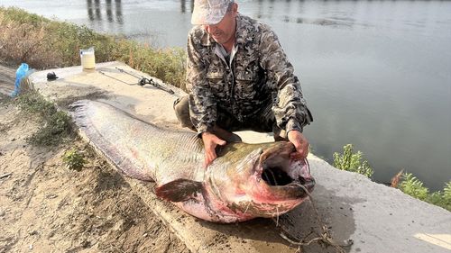 Edirne Meriç Nehri'nde amatör balıkçı Salih Taştarla, Dr. Mehmet Müezzinoğlu Köprüsü yakınlarında oltayla yaklaşık 2,5 m ve 100 kg ağırlığında yayın yakaladı.