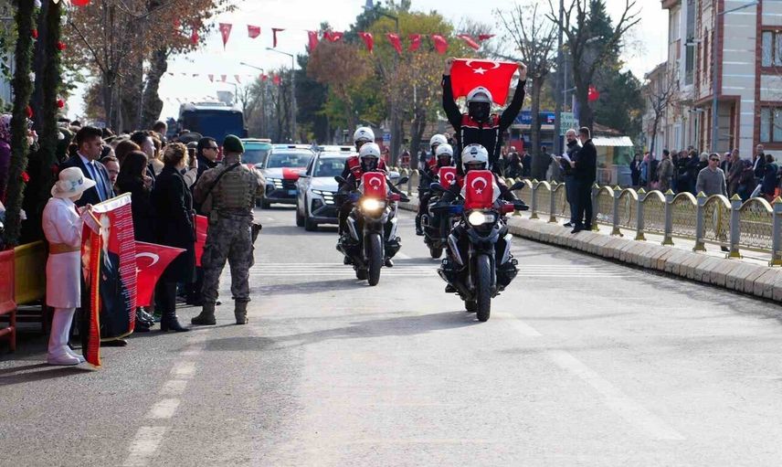 Sabah saatlerinde Atatürk heykeli önünde düzenlenen resmi törende protokol üyeleri, öğrenciler ve vatandaşlar bir araya geldi. Saygı duruşu ve İstiklal Marşının ardından Vali Yunus Sezer, 54. Mekanize Piyade Tugay Komutanı Tuğgeneral Yüksel Kolcu ve Belediye Başkanı Filiz Gencan çelenk sundu.