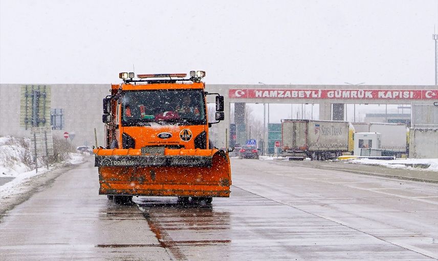 Bulgaristan’a açılan Hamzabeyli Sınır Kapısı civarı ile sınır köylerinde de kar kalınlığının 10 santimetreye çıktığı bildirildi. Karayolları ekipleri, Hamzabeyli Sınır Kapısı yolunun ulaşıma açık tutulması için yoğun bir şekilde çalışmalara devam etmektedir.