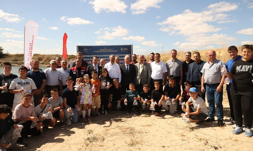 Edirne Valisi Yunus Sezer, Tarım ve Orman Bakanlığı'nın 'Su Kaynaklarının Balıklandırılması' Projesi kapsamında Havsa ilçesine bağlı Osmanlı köyündeki gölete, çocuklarla birlikte 30 bin pullu sazan yavrusunu bıraktı.