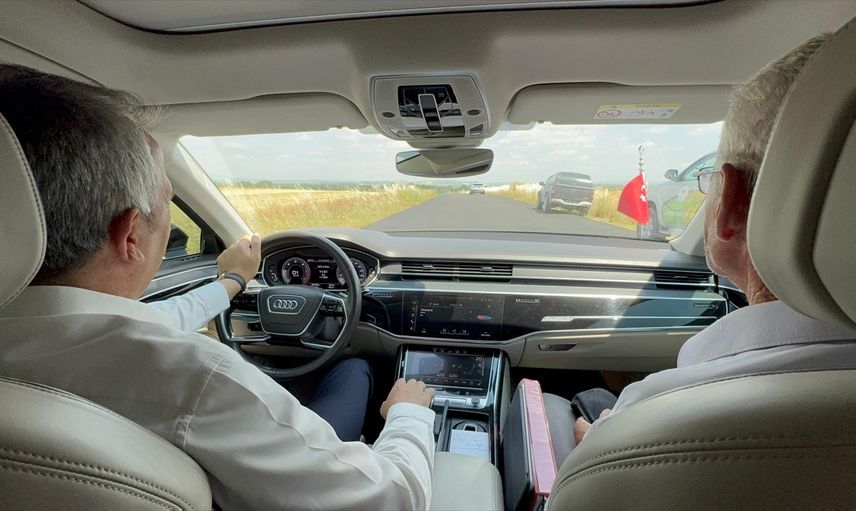 Edirne Valisi Yunus Sezer, direksiyon başına geçerek ''otoyol'' kalitesinde sıcak asfaltla kaplanan köy yollarını 'Lütfü Amca' ile test etti.