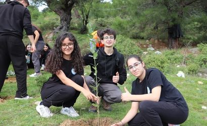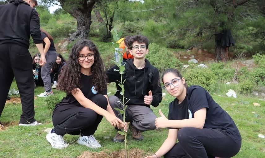 Okul ve orman yetkililerinin destek verdiği etkinlikte öğrenciler fidanları toprakla buluşturdu