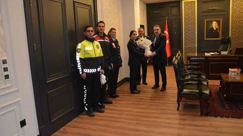 Edremit İlçe Emniyet Müdürü Burak Lehimer ve emniyet mensupları, Türk Polis Teşkilatı'nın 181. kuruluş yıl dönümü ve 10 Nisan Polis Haftası nedeniyle Kaymakam Ahmet Odabaş'ı ziyaret etti.
