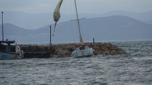 Edremit Körfezi'nde lodos etkisi: 2 balıkçı teknesi battı, kıyıda hasar oluştu